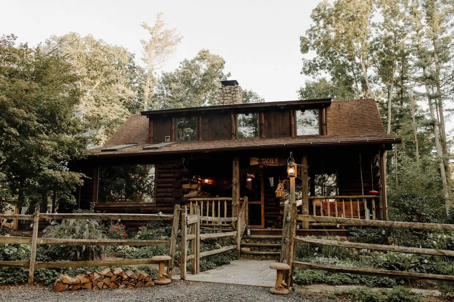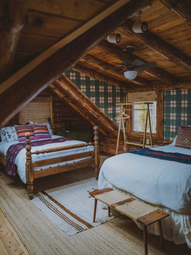 You are staying at the Main Lodge — the historic heart of the property. This 3-bedroom, 2-bath log cabin has been lovingly renovated with a chef’s kitchen, updated bathrooms, a cozy dining room, and a media room, making it the perfect place to gather and relax.